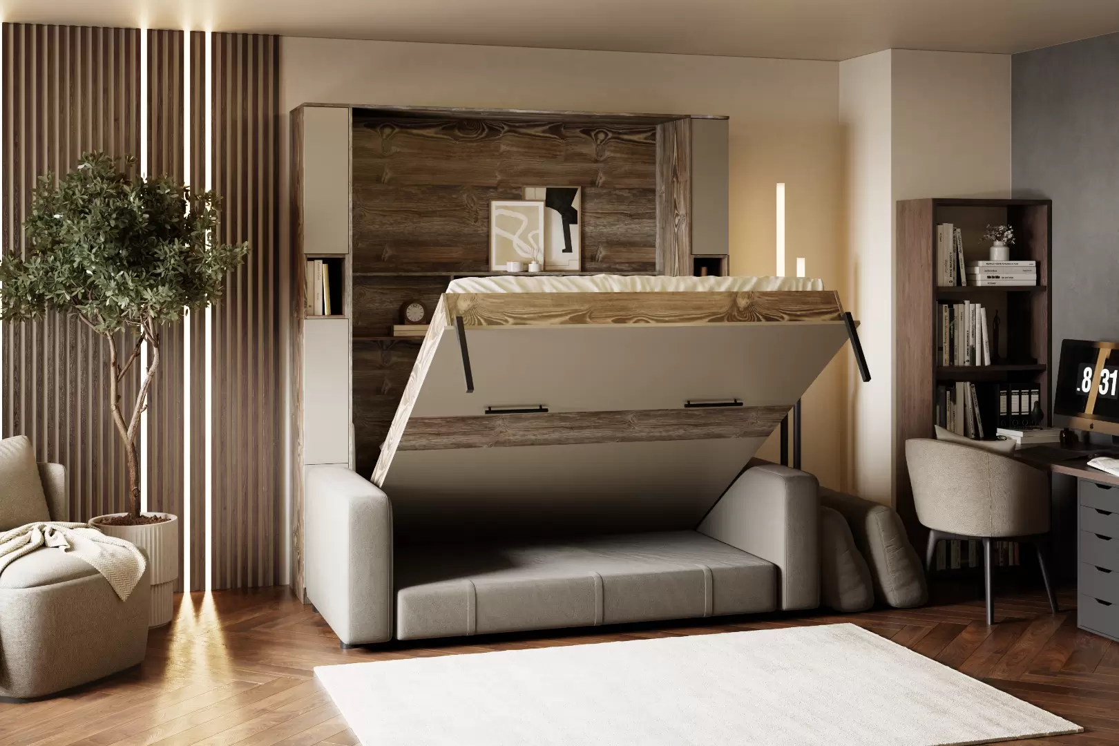 • Корпус и фасад шкаф-кровати, выполненный из ЛДСП;